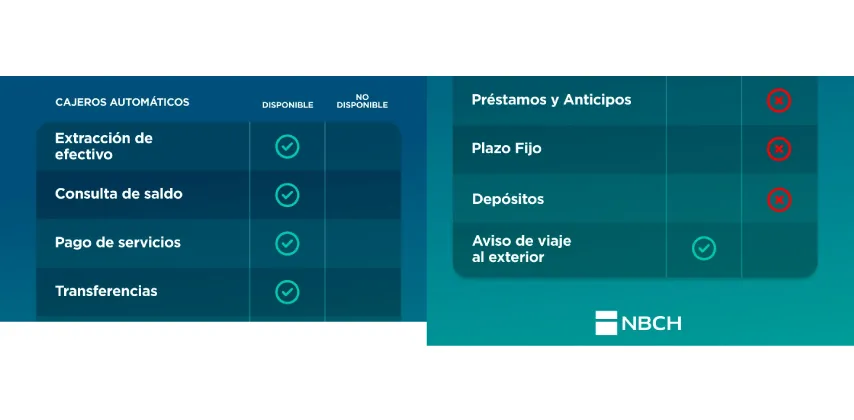 Los clientes podrán seguir operando con normalidad a través de sus tarjetas de débito y crédito, así como realizar extracciones, pagos, transferencias y recargas en los cajeros automáticos.