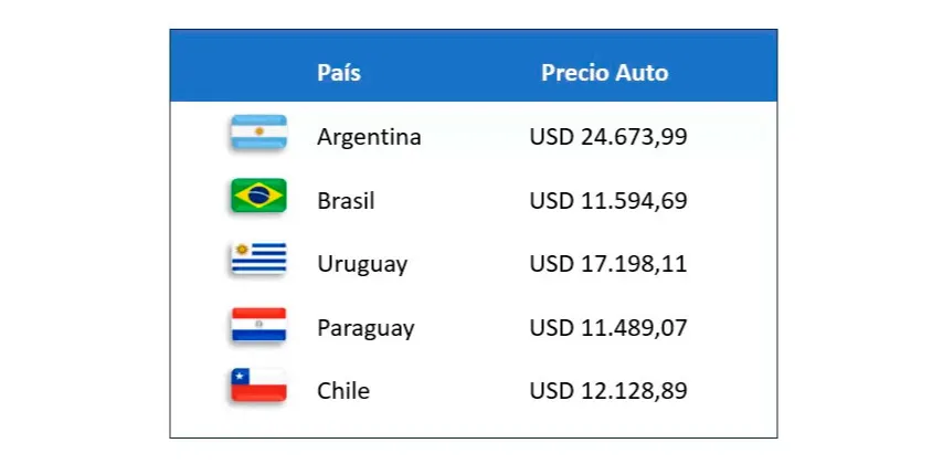Un reciente informe de la consultora Focus Market revela que, a pesar de algunas reducciones de precios en concesionarias, Argentina sigue teniendo el valor más alto de la región para un vehículo nuevo, con un precio promedio de USD 24.673. En contraste, en países como Brasil, Chile, Uruguay y Paraguay, los valores son entre un 30% y un 53% más bajos.