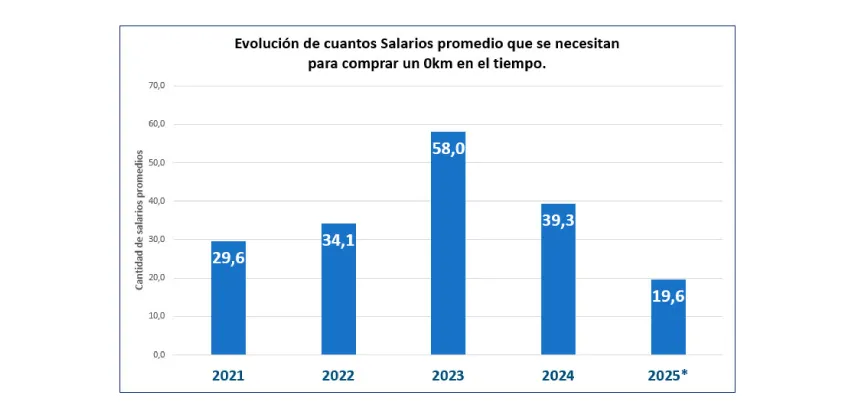 - 2025: Con un salario promedio SIPA de $1.146.474, se requieren 19,6 sueldos para acceder a un auto nuevo.