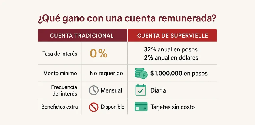 Cuenta sueldo con interés diario del 32% anual en pesos (hasta $1.000.000).