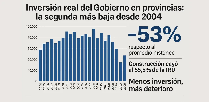 La inversión real directa (IRD) del Gobierno nacional en provincias y en la Ciudad Autónoma de Buenos Aires registró una recuperación en el primer trimestre de 2025, pero sigue siendo la segunda más baja desde 2004. El ajuste impacta de lleno en la infraestructura y pone en jaque la competitividad regional.