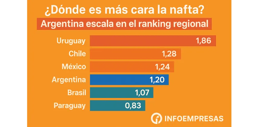¿Dónde es más cara la nafta? Argentina escala en el ranking regional