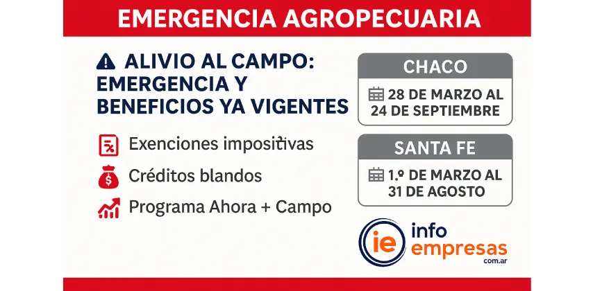 a Nación declaró la emergencia agropecuaria y habilitó beneficios fiscales y líneas de financiamiento para productores chaqueños y santafesinos afectados por la sequía y las altas temperaturas. El programa provincial Ahora + Campo refuerza la asistencia