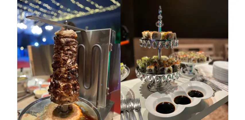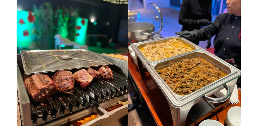 Uno de los mayores diferenciales del servicio está en la recepción gastronómica en vivo, que se convirtió en una de las favoritas del público. “Esa parte le gusta mucho a la gente, porque cocinamos en el momento”, explican. Entre las especialidades más elegidas están los tacos, fatay, carnes a la parrilla y el tradicional shawarma, todos servidos al instante y con una presentación que invita a disfrutar desde el primer bocado.