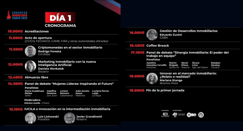Este evento no solo promueve el crecimiento profesional y el networking, sino que también impulsa el desarrollo del mercado inmobiliario en la región. El evento se realizará los días 26 y 27 de septiembre en el Centro de Convenciones Gala de Resistencia, Chaco. Está organizado por el Colegio de Corredores Inmobiliarios del Chaco (CCICH), con el apoyo de la Federación Inmobiliaria de la República Argentina (FIRA) y la Confederación Argentina de la Mediana Empresa (CAME).