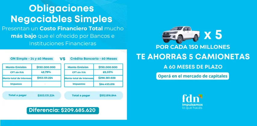 Las Obligaciones Negociables representan una alternativa eficiente y accesible en comparación con los créditos bancarios tradicionales. Al emitir ON, las empresas logran obtener financiamiento significativo a tasas de interés competitivas y con plazos adaptados a sus necesidades. Según lo informado a Infoempresas, un préstamo de 150 millones de pesos a 60 meses a través de ON puede implicar un ahorro considerable para las empresas, equivalente al valor aproximado de cinco camionetas, lo que demuestra su impacto positivo en las finanzas corporativas.