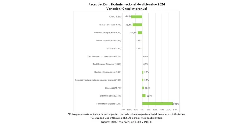 A pesar de las dificultades, la recaudación fiscal de diciembre mostró signos de estabilidad que podrían marcar un punto de partida para un 2025 con mejores expectativas. La consolidación de los impuestos al consumo, como el IVA, que creció un 126,2% en su componente impositivo, demuestra que el poder adquisitivo y el consumo interno siguen siendo motores esenciales para los ingresos tributarios.